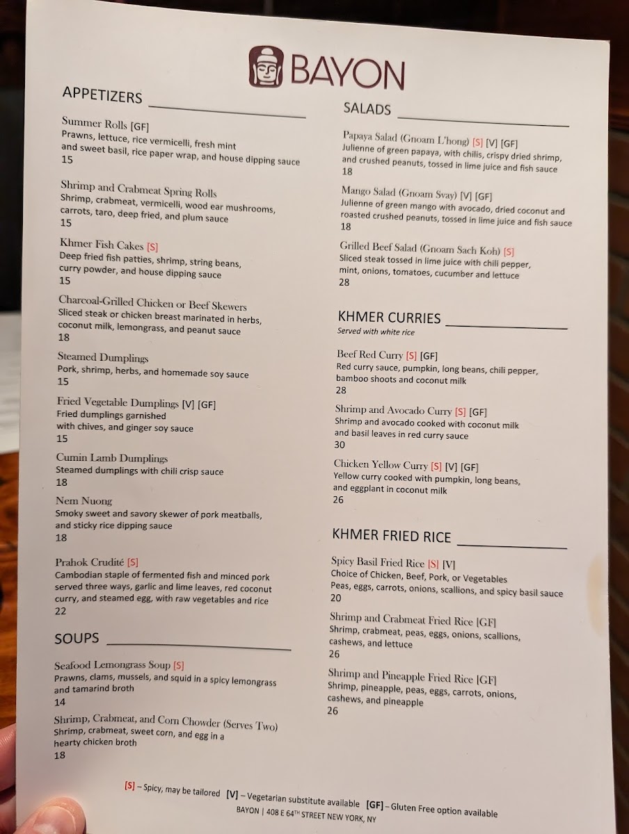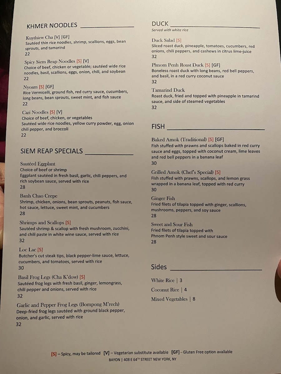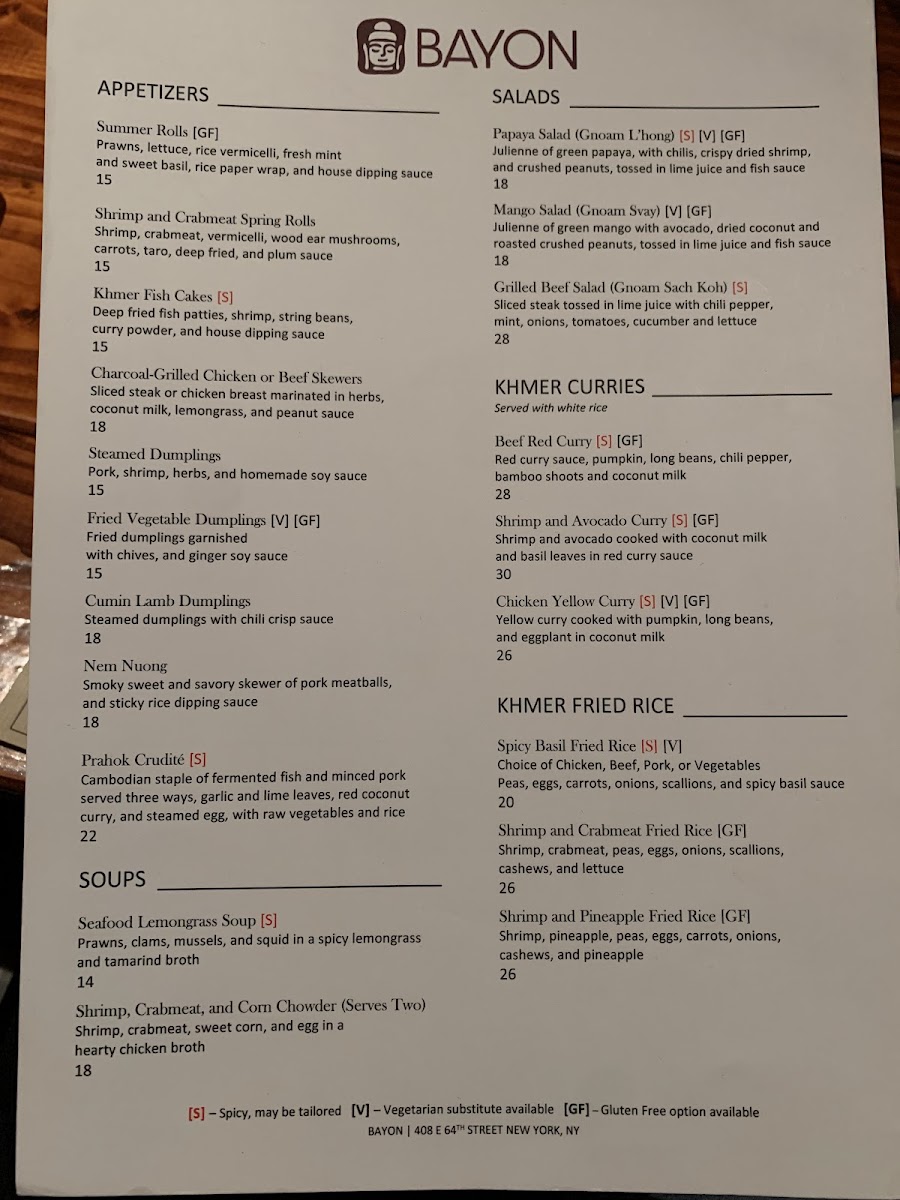 Welcome to Bayon Cambodian Restaurant, a hidden gem nestled in the heart of New York City's Upper East Side. This charming eatery exudes a warm and inviting atmosphere, with its captivating decor setting the stage for a memorable dining experience. Owned and operated by Chef Minh, who brings authentic Cambodian flavors honed from his roots and time spent in Thailand and Vietnam, the menu offers a delightful blend of tradition and culinary innovation.
